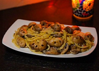 mushrooms ටික උඩින් එක් කර පිළිවෙළට සකස් කර පිළිගන්වන්න.
